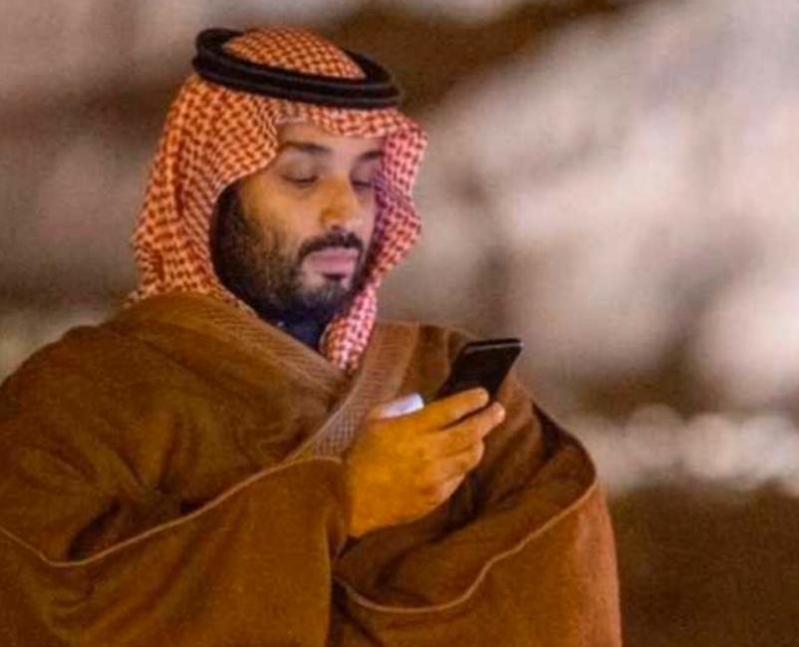 صورة عفوية لولي العهد وهو يتصفح هاتفه صحيفة المواطن الإلكترونية