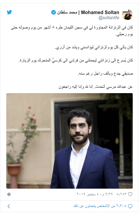 تغريدة مؤثرة من نجل مرسي بعد وفاة شقيقه