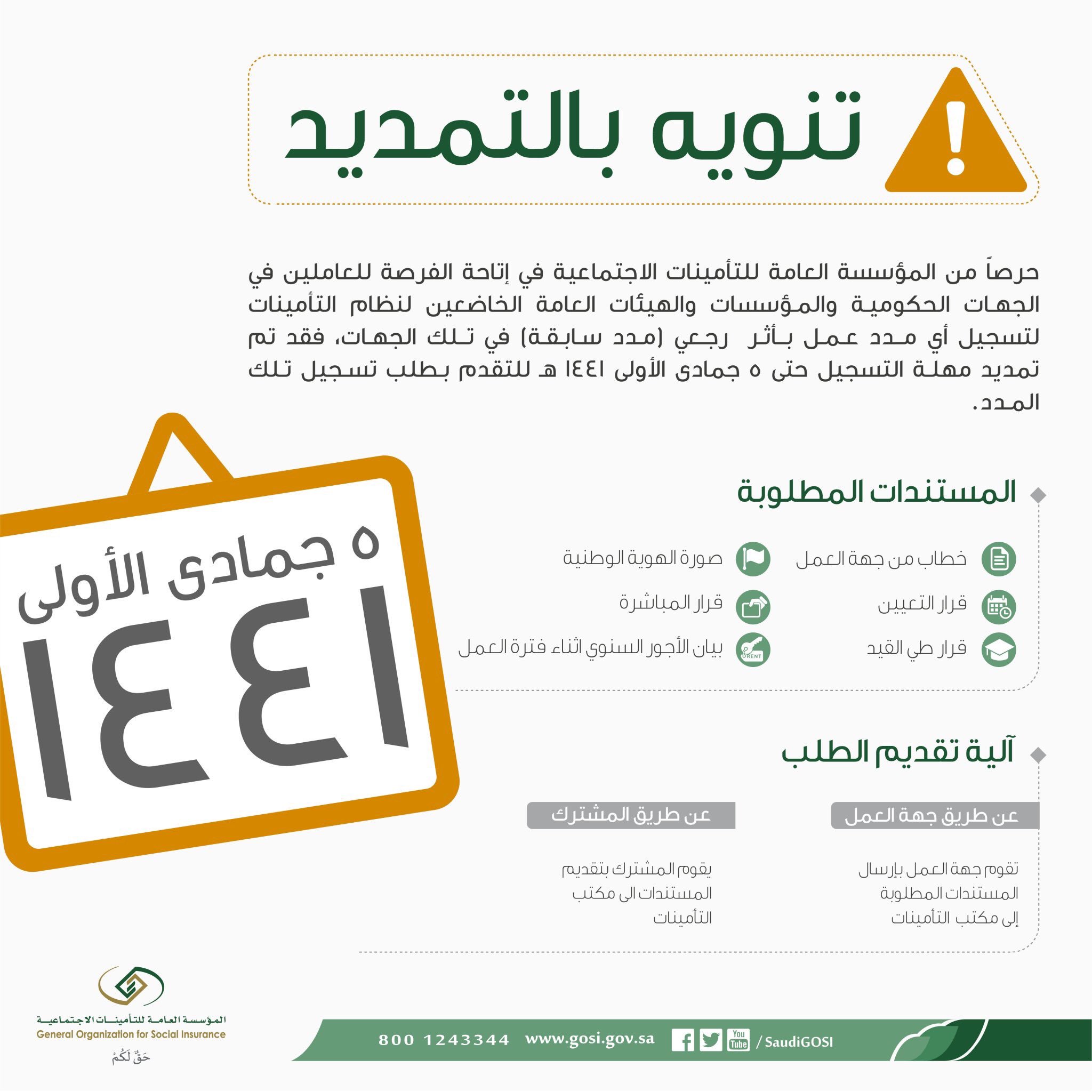بوابة الموظفين نعود بحذر On Twitter تسجيل الخدمات السابقة تعميم مؤسسة التأمينات الاجتماعية آخر مهلة لتسجيل الخدمات السابقة 2019 12 31م 1441 5 5هـ تحقق من اشتراكك لدى التأمينات برقم الهوية Https T Co Bucr4kve7l تأكد من تسجيل خدماتك السابقة